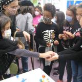 Tradicionalment, divendres ens espera festa grossa al pati de Primària, però les mesures COVID marcades per la pandèmia ens obliguen, per segon any, a adaptar el format a la situació. La festa es va fer per cursos, a les classes, al parc o al pati. Enguany, les nostres cuineres van preparar castanyes ben cuites i calentones per a tothom, moltes gràcies! I els castanyers i les castanyeres de sisè es van encarregar de repartir castanyes (en el sentit literal de l’expressió) a tots els cursos. D’aquesta manera, van poder compartir somriures i unes quantes danses per allà on passaven.
