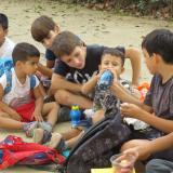 A l’hora de dinar, els nens i nenes de Parvulari van tornar a l’escola, mentre que els/les de Primària vam pujar Montjuïc amunt fins al parc de Joan Brossa. Allà vam continuar gaudint de la jornada de convivència, vam dinar, jugar, riure i viure grans moments d’agermanament.