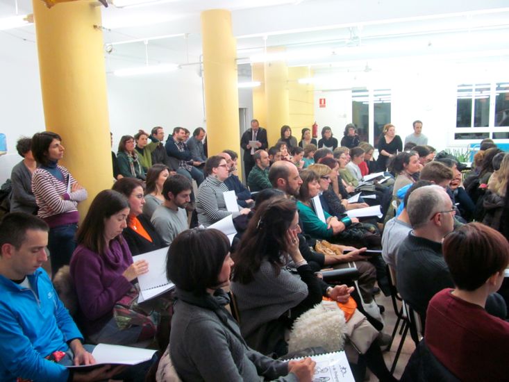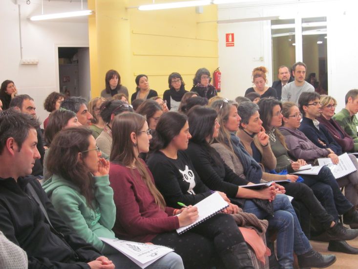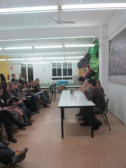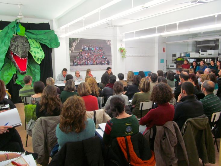 Un menjador ple de pares i mares va permetre escoltar les propostes de l’escola, a través dels seus mestres, i exposar dubtes, suggeriments i opinions de com acollim els nens en aquesta escola. Volem remarcar la valoració aportada per la Laia, una mare de l’escola, professional de la psicologia i exalumna de Magòria, que va manifestar emocionada com visualitzava cada una de les experiències que analitzàvem, experiències també viscudes en la seva infància a l’escola.