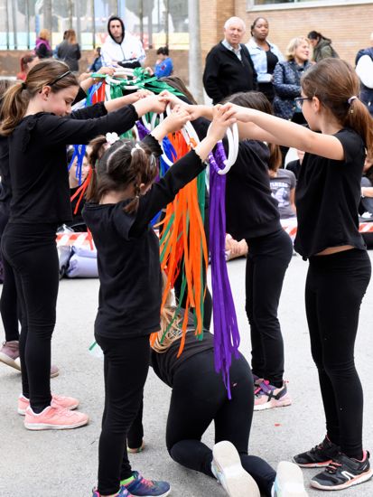 L'espectacle va començar amb un exercici d'escalfament del cos, en el qual van participar tots/es els infants de l’escola que van voler. Tot seguit, les noies de dansa d'extraescolar van fer una representació dels seus contes inventats. Van utilitzar diversos materials com a suport, per ballar amb més facilitat i menys vergonya, com ara paper de diari, cintes, teles, etc. Els de 3r van fer un exercici que prèviament havíem treballat. Els de 5è, com que fan dansa al llarg del curs, van poder demostrar les seves ganes inventant moviments i fent la darrera proposta de moviments desencadenats, en què també ballaven els de 6è i exalumnes de diferents generacions convidades. Estem molt orgullosos que hagin continuat vinculades amb el món de la dansa després de tants anys fora de l'escola. Volem agrair el públic tan entregat i esperem que us hàgim transmès les ganes de moure el cos! Sobretot, no deixeu de ballar!