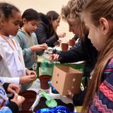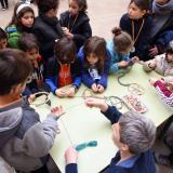 El pati de Primària estava obert per participar en els diversos tallers creatius que havien preparat pares, mares i mestres de l’escola: atrapa-somnis, xapes, maquillatge, jardineria, diademes, clauers... Un seguit de reptes que podien fer els assistents (especialment, nens i nenes) i endur-se un bon record a casa. Volem agrair especialment la complicitat i el compromís que van mostrar els pares i les mares que s’encarregaven de cada taller. Sense ells i elles, això no hauria estat possible.