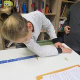 Aquests dies, els nens i nenes de 2n hem estat treballant les unitats de mesura. Hem après que n’han existit moltes i molt variades (el colze, el pam de Barcelona, els estadis, les polzades, els peus...). Hem aprofitat per mesurar-nos, per mesurar objectes i petites distàncies d’elements i espais de l’escola. També ens hem inventat les nostres pròpies unitats de mesura i, finalment, hem fet uns avions per comprovar quin d’ells recorria una distància més llarga. Hem calculat, hem fet aproximacions, hem comparat, hem jugat i hem après pel camí. Us deixem algunes fotos d’aquests dies.