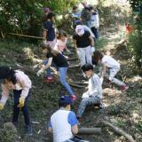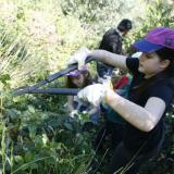 Vam anar a Can Soler, on treballa el pare del Nil. Vam fer esglaons amb troncs, vam tallar plantes invasores i vam salvar les oliveres.