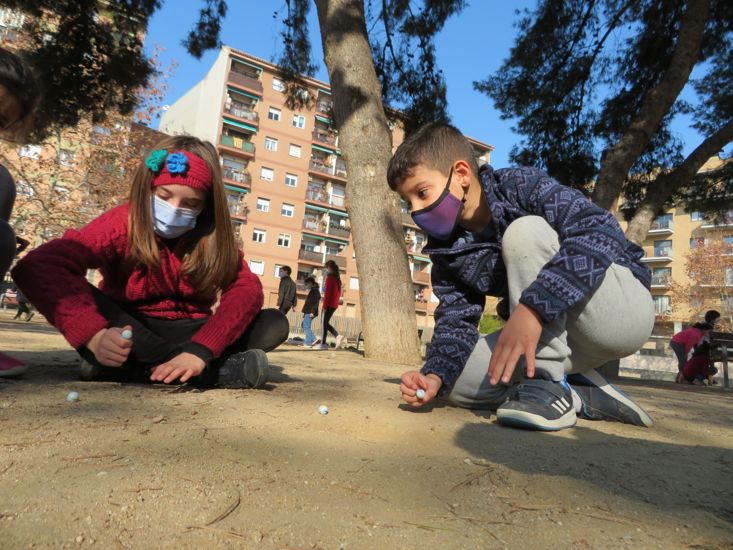 3r i 4t hem anat als Jardins de Celestina Vigneaux per jugar a bales, un joc que potser també jugàvem els nostres pares i mares. El Dani i el Miquel ens han explicat les normes i ens hi hem posat a jugar. Ens ho hem passat molt bé. Un altre dia podrem portar bales un altre cop i tornar a jugar-hi.