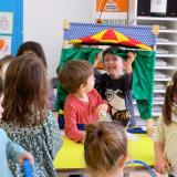 Van ser uns dies plens de rialles, ganyotes i molts sons! Vam escoltar, identificar i reproduir sons d’animals, objectes i transports. També vam jugar al memory sonor i al bingo, vam buscar la nostra parella a partir del so i la mímica, vam fer ganyotes, vam endevinar quin animal érem i, fins i tot, vam pintar els cabells del Senyor Paperina bufant!