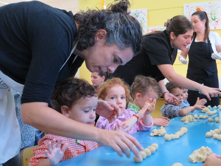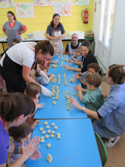 Un any més, per celebrar la Castanyada, els nens i nenes d’Infantil ens hem posat la bata i ens hem convertit en petits cuiners i cuineres! Ens encanta preparar els panellets per a tota l’escola i compartir aquesta tradició tan dolça.