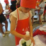 Hem començat l’activitat fent un tomb pel mercat, on la Laura, la monitora, ens ha ensenyat algunes coses sobre els productes de temporada. A més, hem aprofitat el tomb per agafar els ingredients necessaris per a la nostra recepta.