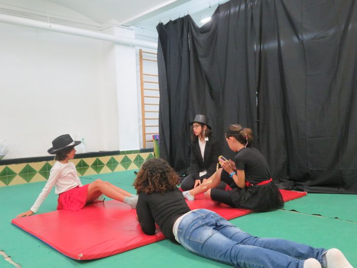 En cuatro grupos, cada uno ha inventado una pequeña historia pensada para este público tan especial. Guiones, lluvia de ideas, reparto de personajes, ensayos, vestuario, atrezo, proyección de la voz, interpretación… ¡Cuántas cosas hay que hacer! Y no olvidemos el “simple” hecho de dejar la vergüenza para otro día y gozar de la puesta en escena ante tan distinguido público.