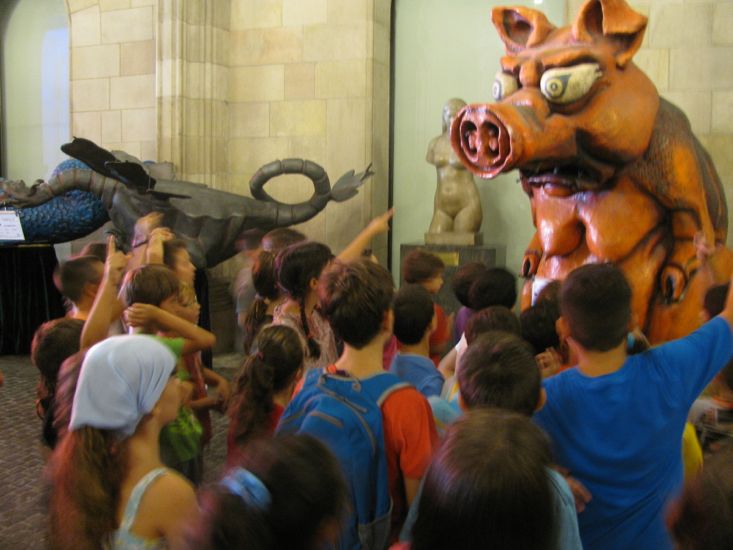 Al Museu Marítim podem veure els gegants dels diferents barris de la ciutat i enguany també vam conèixer alguns que havien estat convidats (Déu n’hi do els gegants de Lleida!). Pugem la Rambla fins a la plaça Sant Jaume, a l’Ajuntament ens esperen les bèsties de foc dels barris de Barcelona. Finalment, anem al Palau de la Virreina, on el Seguici Popular descansa per agafar forces de cara a l’agenda atapeïda que els espera. Aquell mateix divendres el Toc d’Inici els farà ballar per arrencar la festa major.