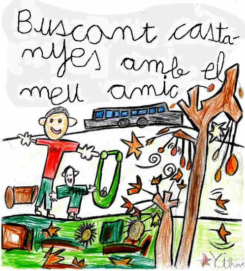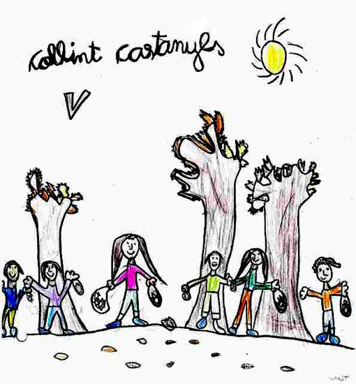 Vam anar al Montseny, a Fontmartina, vam passejar per un acolorit bosc de castanyers. Ens va fer un dia fantàstic i assolellat. Vam trobar alguna castanya, dues casetes de carboners, vam travessar uns petits rierols... Tota una aventura! Aquí en teniu unes quantes il·lustracions com a mostra.