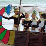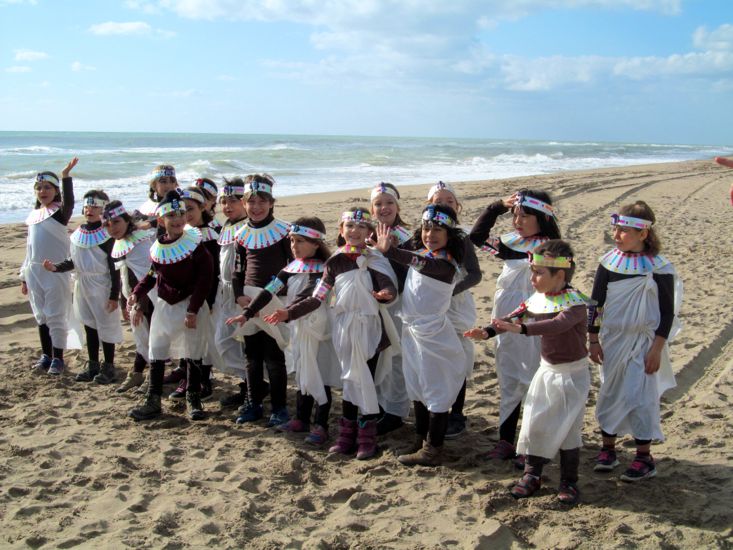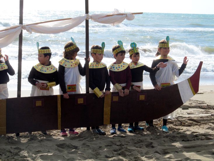 Amb motiu de l’Expo, els alumnes de Cicle Inicial hem preparat una pel·lícula ambientada en l’Antic Egipte. La localització per al rodatge va ser la platja. Ens vam endur les disfresses de cada nen i vàrem preparar un mercat amb joies, fruites i joguines. Fins i tot vàrem construir dos vaixells enclavats a la sorra per fer més real l’escena. Els nens es van engrescar molt i van gaudir plenament de l’activitat.