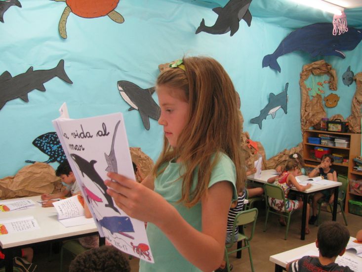 Aquest trimestre hem estudiat la vida al voltant del mar. Vam anar a visitar l’Aquàrium i durant un temps cada nano va anar cercant informació sobre un animal diferent. També vam convertir les parets de la classe en un aquàrium on cada nen va dibuixar i pintar l’animal que estudiava. Finalment, vam elaborar una revista sobre aquests animals. Aquí en teniu una mostra.