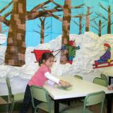 La classe de primer l’hem vestida d’hivern. L’hem ambientada amb un paisatge d’alta muntanya en què hi ha nens jugant amb la neu i animalets que hibernen o que experimenten certs canvis durant aquesta estació.